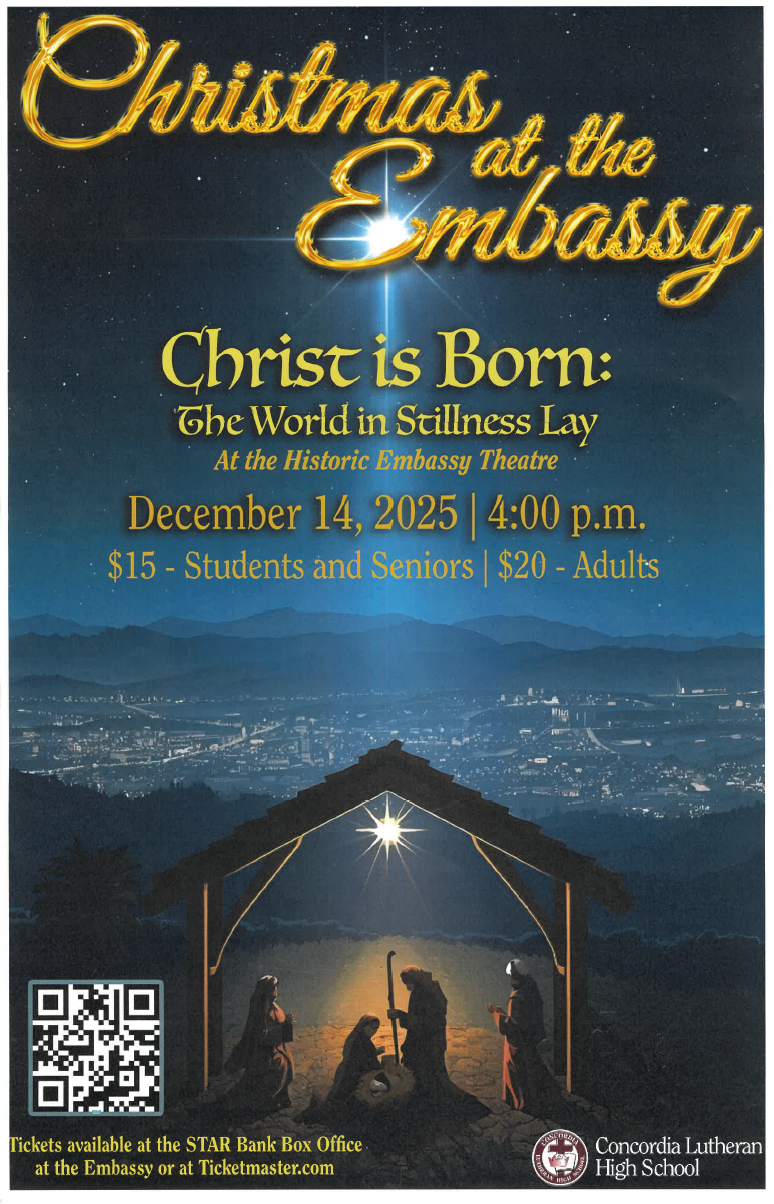Join Christmas at the Embassy Sunday, December 14th at 4:00 pm. Purchase tickets at the STAR Bank Box Office, The Embassy or Ticketmaster.