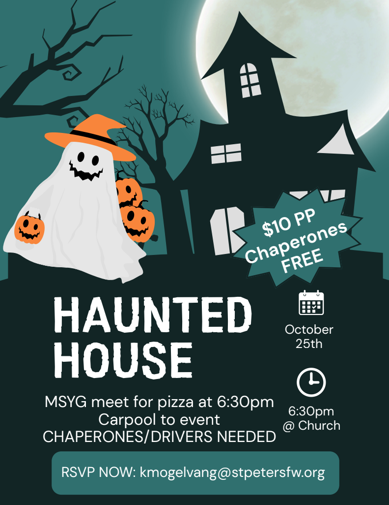 Middle School Youth meetings are during Hope Sessions. RSVP now for the Haunted House!