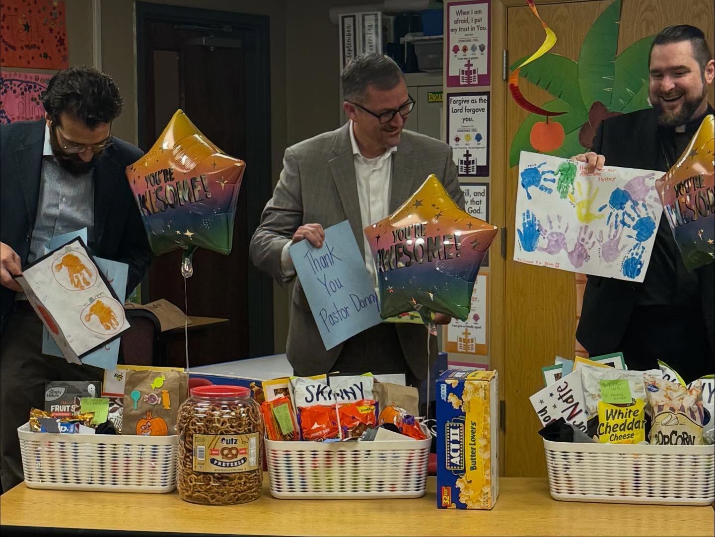 Preschoolers surprised our pastors with baskets filled with their favorites, along with socks that say, "Best Pastor Ever!" It was so much fun to see the smiles on the pastors' faces as the children yelled "SURPRISE!" and also to see the excitement in the children when they saw how happy the pastors were. St. Peter’s is blessed with three wonderful pastors who share Jesus with us, pray with us, and love us. Thank you, Pastor Danny, Pastor Mac, and Pastor Nate, for all you do!